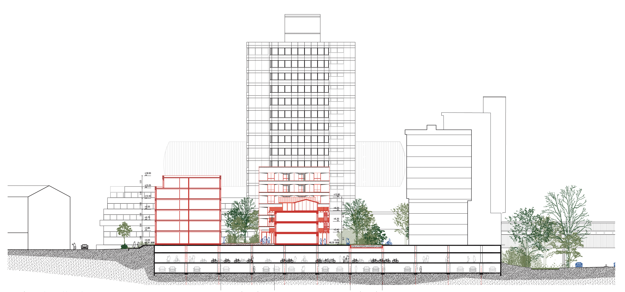 Designed as a car-free neighbourhood, the project emphasises soft mobility and accessibility, while offering contextual, identifiable architecture on a human scale.