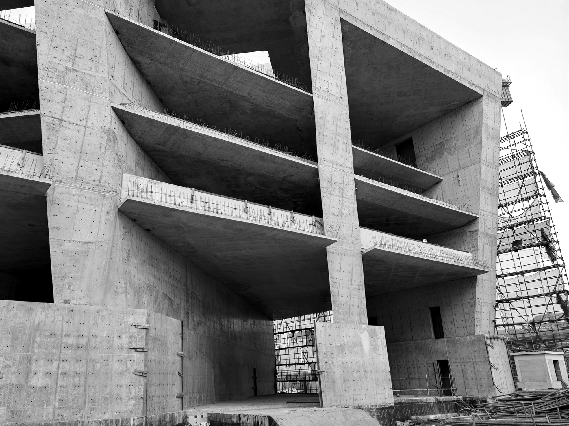 The “artists' garden” cultural complex is currently being built in Qingdao, on the shores of the Yellow Sea, on land reclaimed from the sea and on the site of a former fishing village. The approximately 70,000 m² complex includes a museum, artists' studios, a hotel, a youth hostel, a marina, two luxury residential buildings, and a 60-meter tower as its centerpiece. The tower is set back slightly and elevated above the rest of the site. Its elongated layout allows the apartments to face south and the sea. The 80 apartments are all dual-aspect, deliberately deep, and have at least one terrace. The south-facing living rooms enjoy sunshine and views of the Yellow Sea.